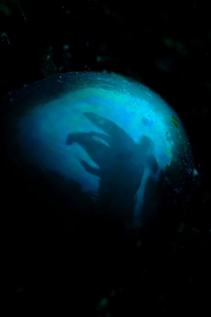 クメジマオトヒメエビのそれぞれのハサミ、顔に計3つスポットライト当てました。